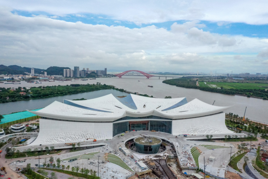 这朵新“木棉”是如何构成的呢?1.65万吨钢结构桁架、网架为“花萼”,2.3万块白色金属屋面铝板为“花瓣”,0.78万平方米玻璃采光屋顶为“花蕊”,构成一朵5.4万平方米的“木棉花”,内设主会场、宴会厅、理事会议厅、多功能厅等45个大小会议厅及展厅,最大会议厅面积超2500平方米。