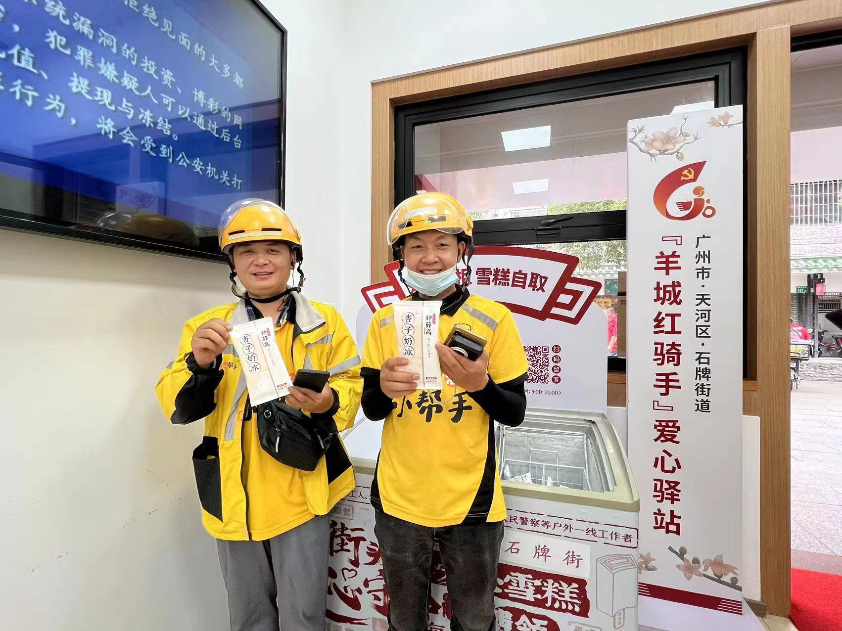 去年9月,石牌街道在绿荷西大街2号打造了全市首个城中村“暖蜂巢·小哥驿站”,打造集党务、政务、服务于一体的综合性服务平台,营造“小哥之家”。经过近一年的探索实践,“暖蜂巢·小哥驿站”逐步形成站点多元服务、党员作用发挥、骑手志愿服务、诉求收集反馈、各方共建共享五大机制,阵地作用不断增强。