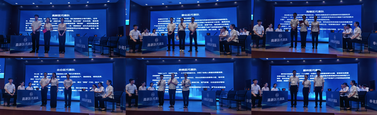 经初赛笔试选拔,共有奉化区、海曙区、北仑区、余姚市、鄞州区、高新区6支代表队晋级本次决赛。经过形象展示环节、个人必答题和抢答题环节,各组选手争分夺秒、强强对碰、火光闪现,各参赛队比分紧咬,每一次抢答与挑战都惊心动魄,气氛紧张而热烈。竞赛评委会按照决赛规则,秉持公平公正,给予了认真、细致的打分。