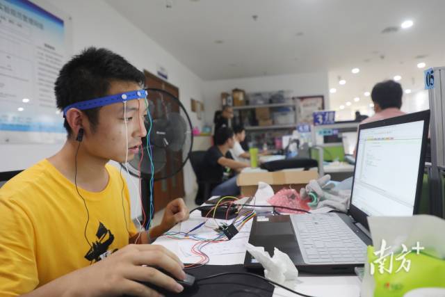 “脑机接口可以分为植入式和非植入式两种,植入式通常将传感器穿过颅骨植入大脑或放入颅腔内,非植入式是借助可穿戴设备完成。”李骁健说。