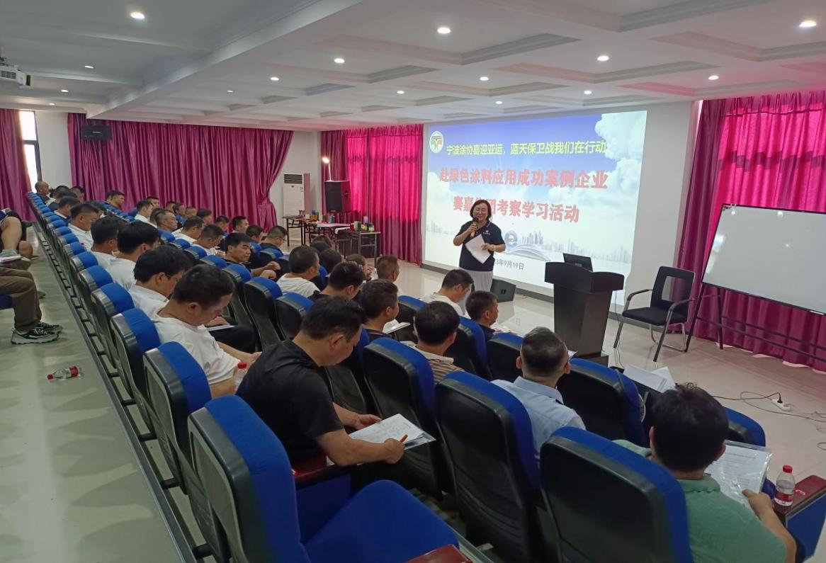 为积极推动制造业绿色涂料“源头替代”进程,在市生态环境局的支持和指导下,应企业提出的需求,在亚运会即将召开之际,9月19日下午,宁波市涂料与涂装行业协会联合宁波市生态环境科学研究院依托协会绿色涂料“源头替代”资源对接平台赴绿色涂料应用成功案例企业——赛嘉集团参观学习,宁波市生态环境局余姚分局王国雯科长、宁波市生态环境科学研究院尚政伟工程师莅临本次活动,宁波制造业涂料应用端企业公牛集团、戴维医疗器械、劳伦斯汽车内饰等50多家企业参加本次活动,本次活动由吴晓明秘书长主持。