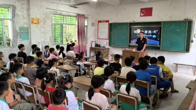 为助力兴宁市罗岗镇乡村教育发展,提升镇村中小学生科学素养,今年秋季新学期一开学,广州市天河区驻梅州兴宁市罗岗镇帮镇扶村工作队(下称“工作队”)邀约广州市南粤航空航天科技创新研究院,在兴宁市罗岗镇霞岚中学、大望小学和青湖小学开展航空航天支教工作。
