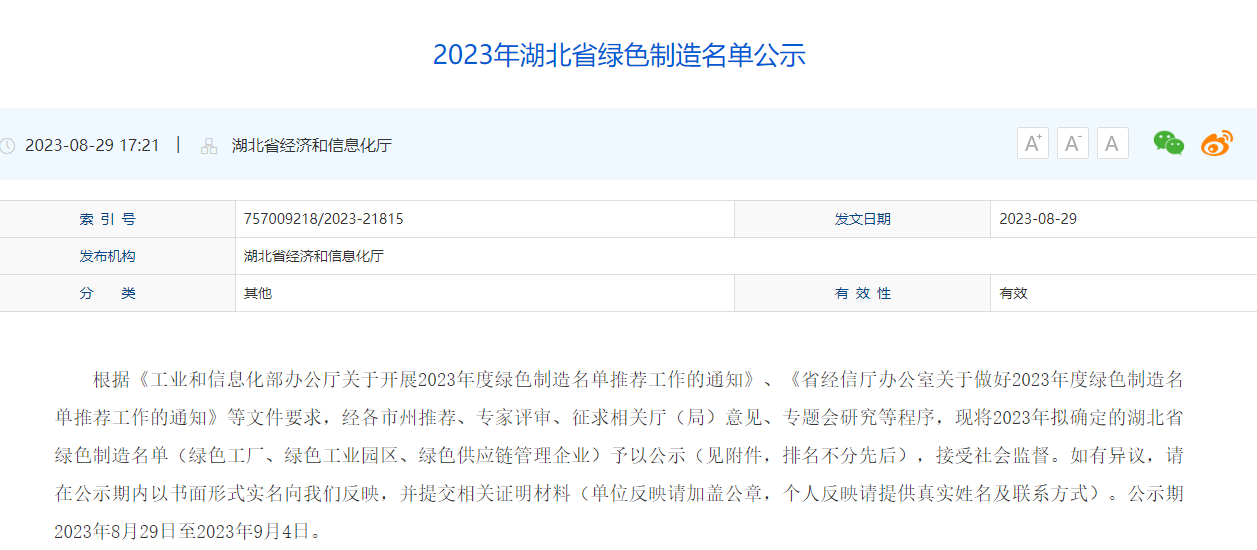 9月19日,记者从市经信局获悉,我市7家企业入围2023年拟确定湖北省绿色制造名单,目前已完成公示。同时,赤壁经济开发区入围省级绿色工业园区。