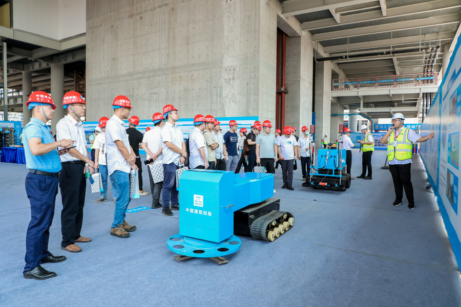 本次观摩项目——中建四局科创大厦项目位于广州国际金融城东区,是广东省首批智能建造试点项目,也是中建四局首个集投资、开发、勘察、设计、建设、运营于一体的项目。现场分为智慧展厅、现场展区、云端建造工厂三个观摩区,以多样的载体和形式全面展示项目在智能建造、质量管理、技术引领等方面的先进做法。
