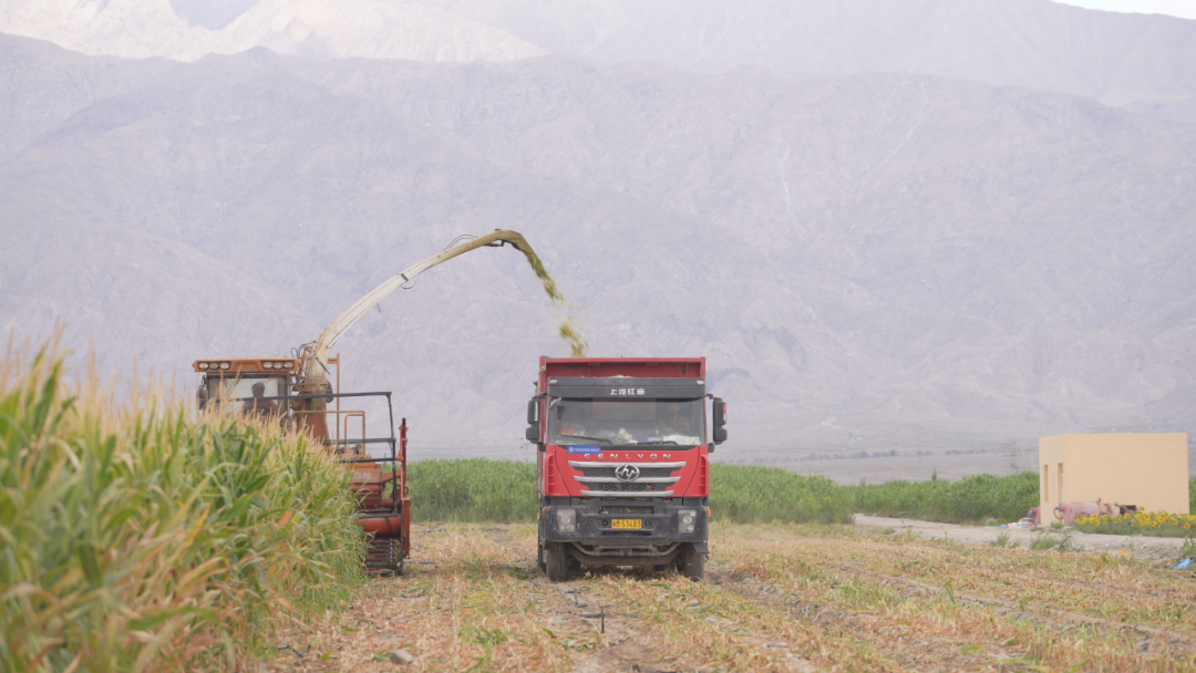 科创中国和静县:华凌牛业巴州有限公司2.6万亩青贮玉米进入采收期