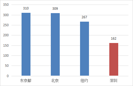 虽然深圳实施了一系列政策吸引国内外人才,但是由于缺少重大科学研究平台和载体,以及新兴产业发展对应用型人才需求增长,导致高端人才难以满足科技创新需求。深圳1.53万名高层次人才中,以院士、引进高层次专家等为代表的“高、精、尖”人才仅占3.3%;全职院士46人,仅为北京的1/16、上海的1/4;在深工作的引进高层次专家461人,仅为北京的1/4、上海的1/2。深圳A类外国高端人才仅有3314人,低于北京(3610人),远不及上海(17811人)。其中,人才蓄水池作用的重大科学研究平台和载体不足,是重要的影响因素。深圳目前有国家重点实验室6家,是北京(116家)的5%、上海(44家)的14%、广州(20家)的30%。据2019年自然指数排名,TOP50的全球科研机构中,北京5家、纽约3家、伦敦3家、东京都2家、新加坡2家,而深圳没有科研机构入榜。全市高校仅有14所,无“双一流”高校,而北上广分别有高校89所、68所、80所,“双一流”高校8所、4所、2所。