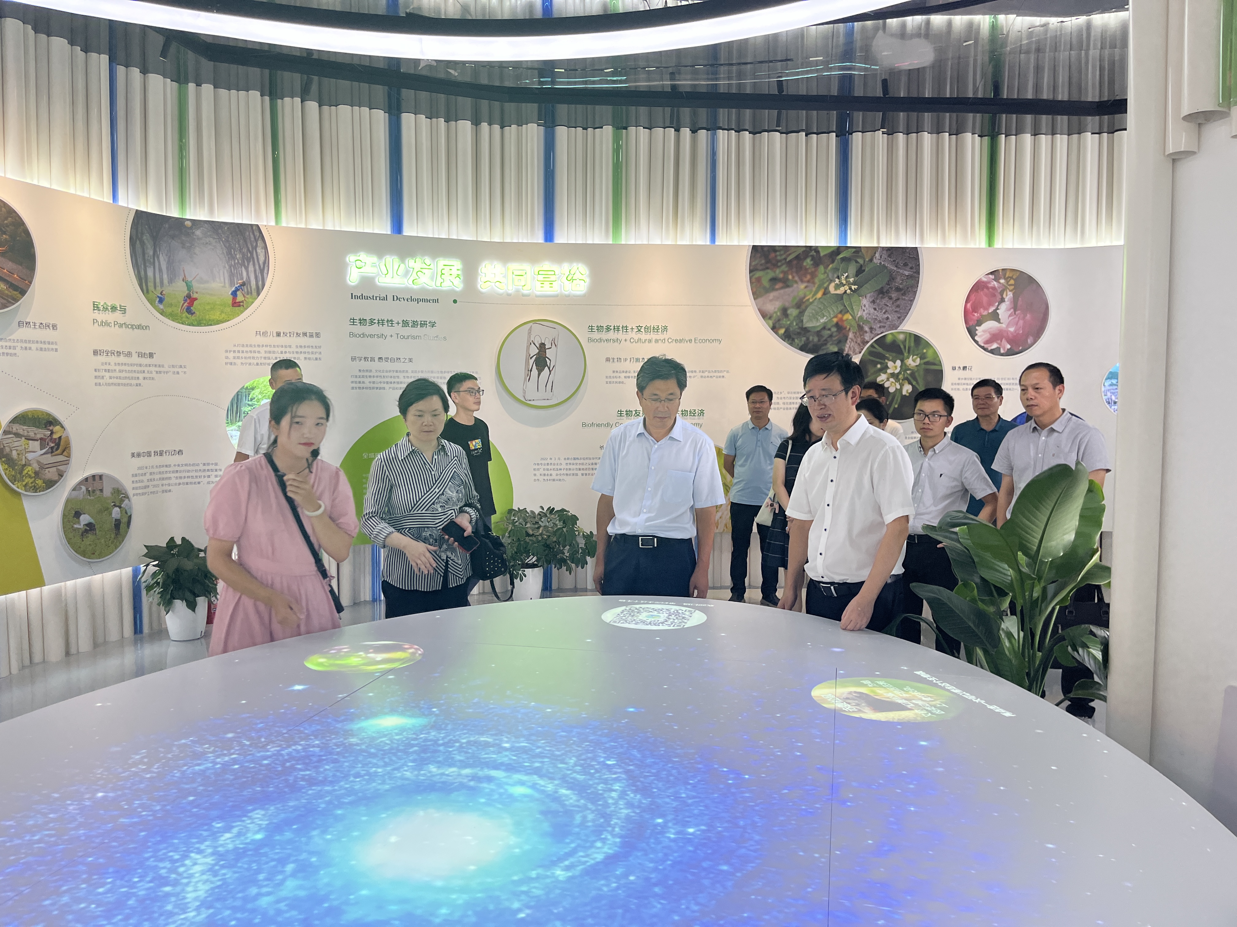 方巍一行走进龙观生物多样性友好体验馆,实地参观当地特色生物,体验海曙区(龙观)生物可保护数字地图、沉浸式VR体验场景等项目。