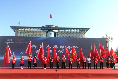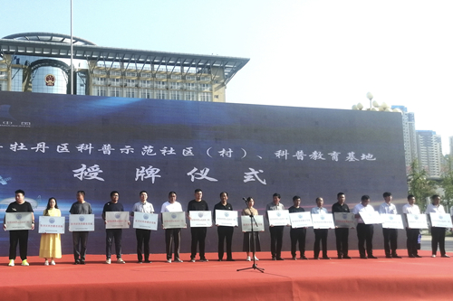 活动现场,宣读了《2022年牡丹区科普示范社区(村)、科普教育基地名单》,为9个科普示范社区(村)和9个科普教育基地颁发牌匾,并为10个区直部门科普志愿服务队和18个镇街科普志愿服务队授旗。