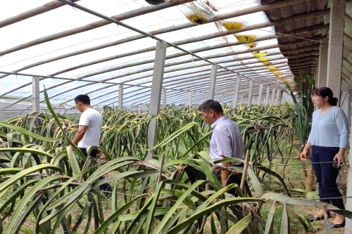 讲座结束后,农技专家到田间地头对农民进行现场指导,对种植户提出的问题进行详细解答,实地操作,让大家掌握了在火龙果病虫害防治、火龙果种植管理方面的实用技术。