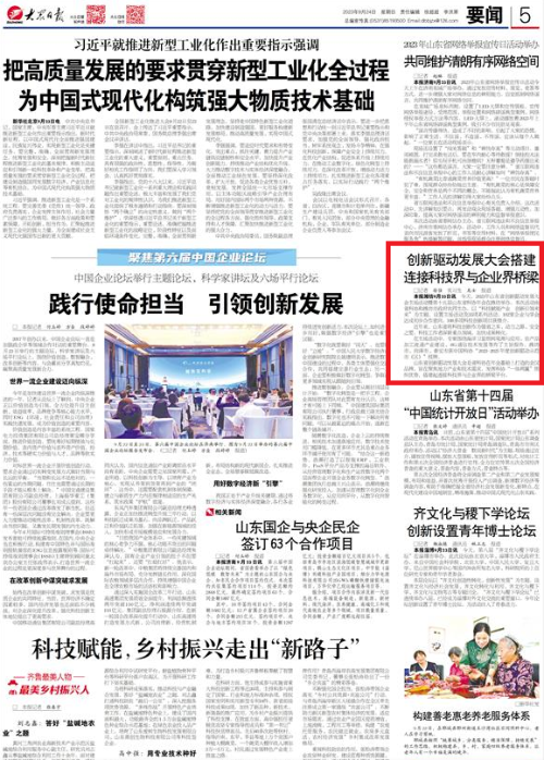 大众日报:创新驱动发展大会搭建连接科技界与企业界桥梁