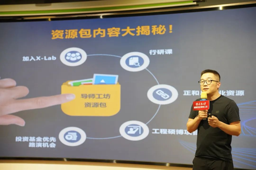 签约仪式后,天津大学宣怀学院副院长杨晓峰发布了为天津大学优秀项目团队定制的创新创业资源包。在未来,参与导师工坊的项目团队还将获得参与宣怀学院创新创业实战课的机会,为创业项目赋能和加速。