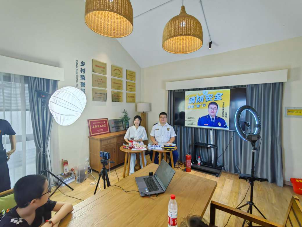 直播间内,镇海区消防救援大队工作人员张德起与十七房村信息传播中心的主播一道,通过幽默风趣的语言,介绍日常生活中应注意的消防科普小知识。
