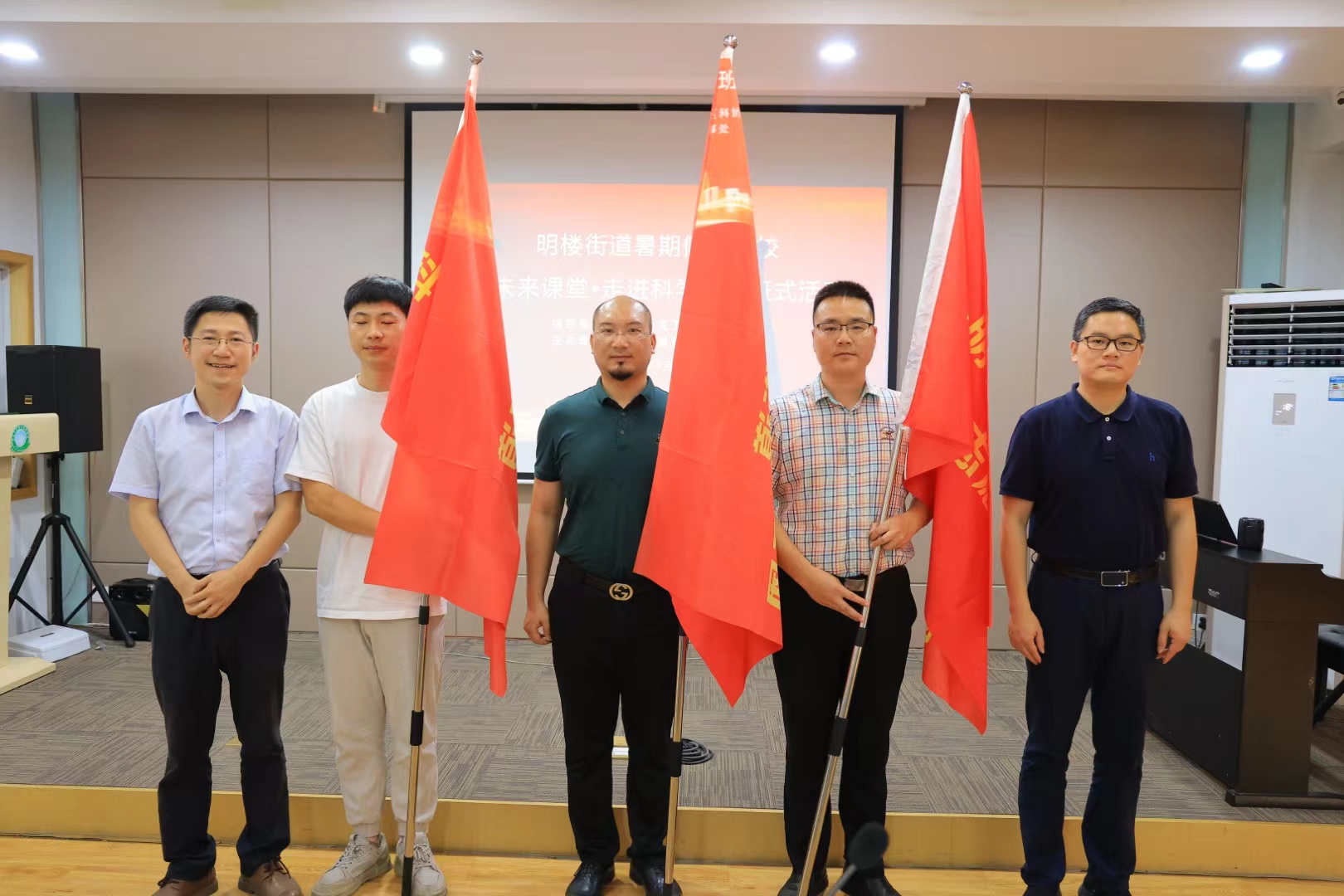 活动现场,鄞州区关工委、区科协等领导还为明楼街道“五老”志愿服务团、科普教育志愿服务团等五支服务青少年的志愿团队代表授旗。暑期以来,明楼街道整合各方资源,发挥志愿服务团队优势,各社区假日学校已举办和计划举办爱国主义教育、科普、文艺、法治等各类主题150余场,报名参加学习和活动的青少年人数超3000余人次。