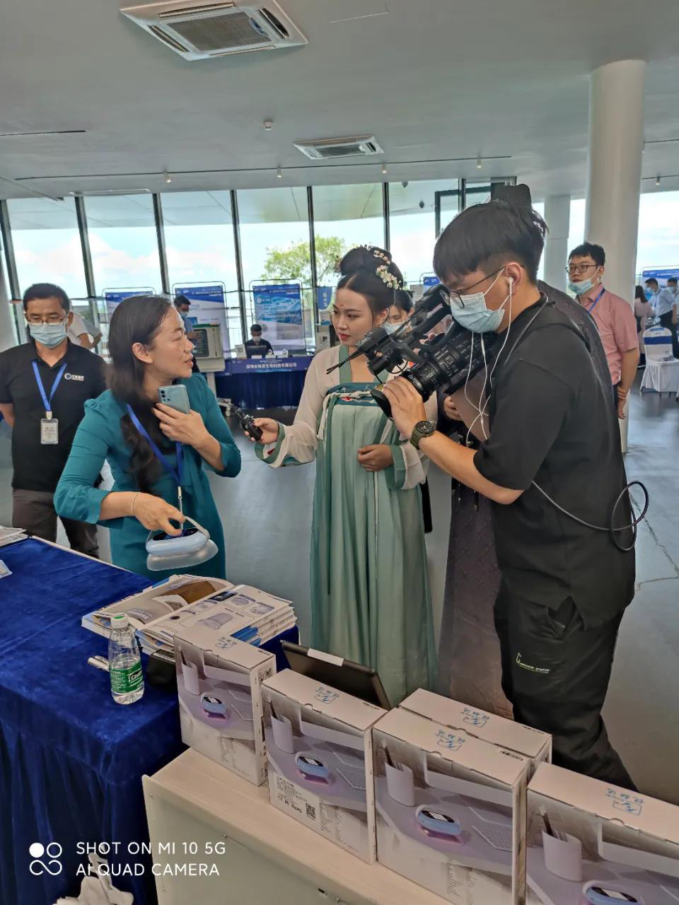 威艾特科技致力于安全智能家居、消毒器械、医疗器械、智能机器人设备等产品研发制造,提供从研发、生产一体化服务。现场展示了“智能消毒垃圾桶”“智能消毒健康鞋柜”“LED紫外线手持消毒器”等产品,产品吸引了现场诸多与会者观看了解。下图为公司运营总监陈如婉接受深圳电视台直播采访,对公司产品进行演示与讲解。