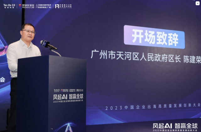 近日,2023年中国企业出海高质量发展创新大会在广州天河举办。大会以“风起AI,智赢全球”为主题,汇集政界领袖、学界前沿、商业精英和技术专家于一堂,共同探讨AI前沿话题,共创中国企业“走出去”新范式,深入全球化高质量发展,进一步释放经济增长潜能。
