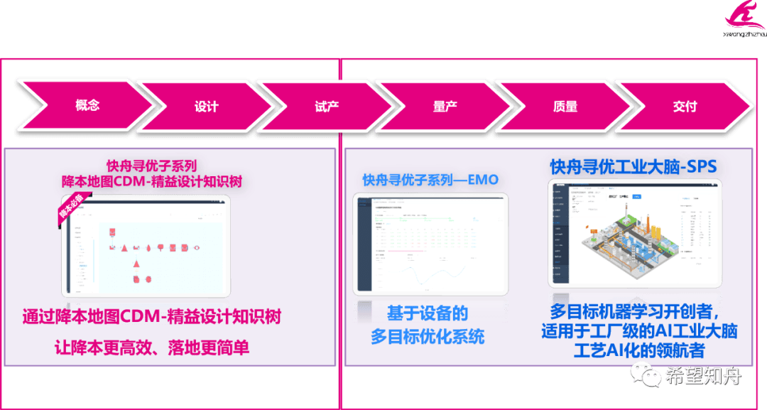 成绩的取得并非一蹴而就,缘自工业领域多年咨询经验和快舟寻优产品市场验证的可靠性、先进性、通用性。快舟寻优子系列降本地图(CDM)-精益设计知识树是研发数字化底座,快舟寻优子系列是工艺AI的领航者,它们以企业的标准化接口实现数据的互联互通、实现业务全流程的协同,是帮助企业实现自学习、自决策、自执行、自适应的AI工业大脑。