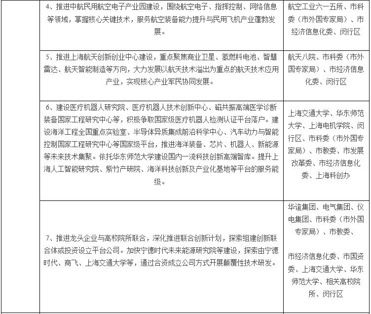 2.培育战略科技力量。依托相关高校全国重点实验室、国家工程研究中心、前沿科学研究中心等,推进海洋装备、芯片、机器人、新能源等未来技术研究布局。推进产学研合作,提升上海人工智能研究院、紫竹产研院等产业化平台的服务能级,开展跨学科、跨领域协同创新。