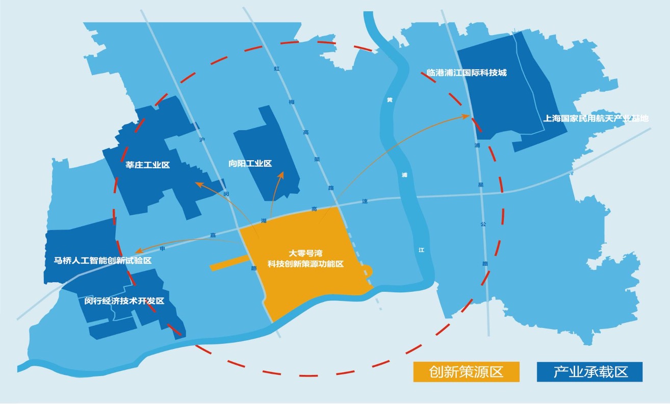 “大零号湾”可辐射至周边闵行经济技术开发区、莘庄工业区、临港浦江国际科技城等区域,总面积约120平方公里;为高校院所成果转移转化项目发展提供产业承载和配套服务。