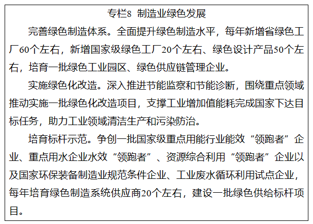 (七)绿色制造协同升级工程。完善绿色制造体系,坚持数字化引领和绿色化协同,推动数字赋能绿色制造,发布工业节能环保“五个一百”推介目录,打造一批绿色产品、绿色工厂、绿色园区、绿色供应链管理企业。实施制造业绿色化改造,对照重点领域能效标杆水平或行业领先水平,实施一批节能降碳重点工程,在全省建设一批绿色供给标杆项目,培育一批绿色制造供应商,助力重点行业及区域节能减排,实现数字化绿色化协同升级。(责任单位:省经济和信息化厅,配合单位:省发展改革委)强化排污数字化监管,推动排污单位严格落实污染防治主体责任,通过数字化手段赋能生产端减污降碳协同增效,促使主要污染物达标排放并满足总量控制要求。推动涉水、涉气重点排污单位加强自动监测设备、视频监控设施的安装联网及运维监管,对其他排污单位通过联网视频监控、工况监控、用电用能监控、流量计等方式进行监管,构建以污染源自动监控为主,视频监控、用电用能监控为辅的非现场监管体系。(责任单位:省生态环境厅)