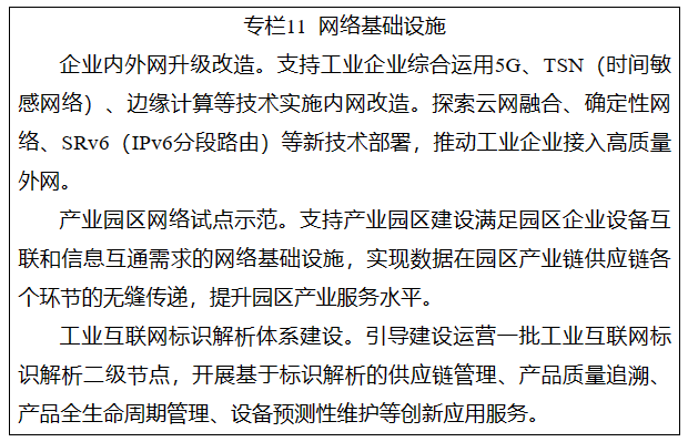 (十)数字化基础支撑工程。加强网络基础设施建设,支持基础电信企业优化升级省级骨干网络,推进5G网络深度覆盖和应用推广。推动标识解析二级节点建设,强化标识在工业领域中应用。加强工业领域网络和数据安全保障,扩大省级工业互联网安全态势感知平台覆盖范围,推动工业互联网企业开展网络安全和数据安全分级分类管理,引导企业开展两化融合管理体系升级版、DCMM(数据管理能力成熟度评估模型)、数据安全管理等国家标准贯标,提升企业数据管理能力。(责任单位:省经济和信息化厅、省通信管理局,配合单位:省发展改革委、省科技厅)