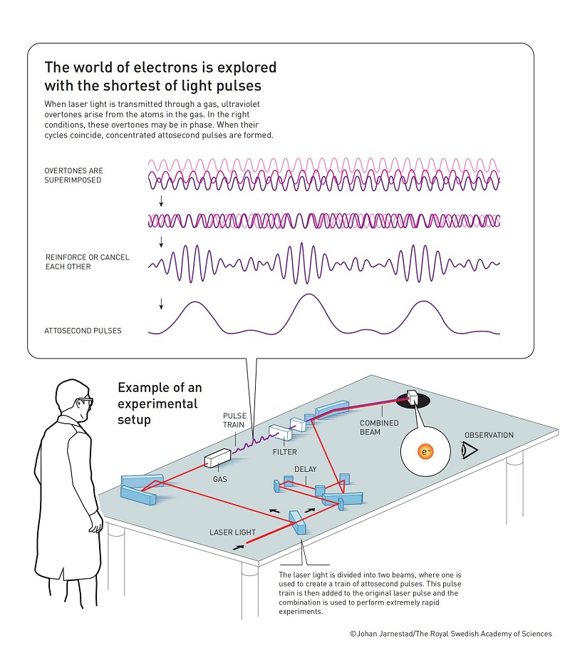 用最短光脉冲探索电子世界。图片来源:诺贝尔奖官网