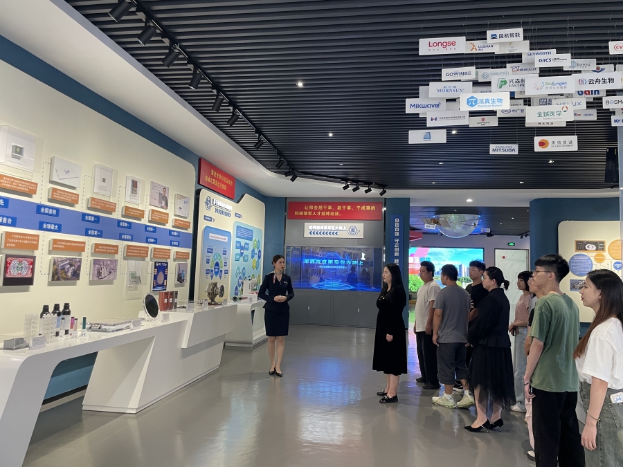 与传统的红色场馆不同,先行示范馆2021年落成,最大的特点之一就是“新”。这样的“新”,不仅在于展馆落成时间,更在于它不断更新的速度。在展馆首层,一个个中小企业创造的“全球第一”“全球领先”“全国第一”引人注目。开馆两年多来,这里已经多次更新,从粤芯半导体建成大湾区首条12英寸芯片生产线到广东广纳芯拥有全国首条6寸滤波器产线,从洁特生物自主研发的3D细胞培养支架在生物实验室高端耗材方面代表我国实现“零的突破”到烯湾科城在全球率先实现碳纳米管纤维产业化……每一次更新,都代表着一个中小企业又办成了一件大事。黄埔区委宣传部副部长唐妍介绍,在黄埔区、广州开发区,中小企业不断推动自主研发创新,专注各自行业领域攻坚克难,突破卡脖子技术,这些在新时代新征程中取得的成果成效,是新时代爱国主义教育最具代表力和说服力的鲜活素材,这也成为先行示范馆作为爱国主义教育基地的最大特色之一。