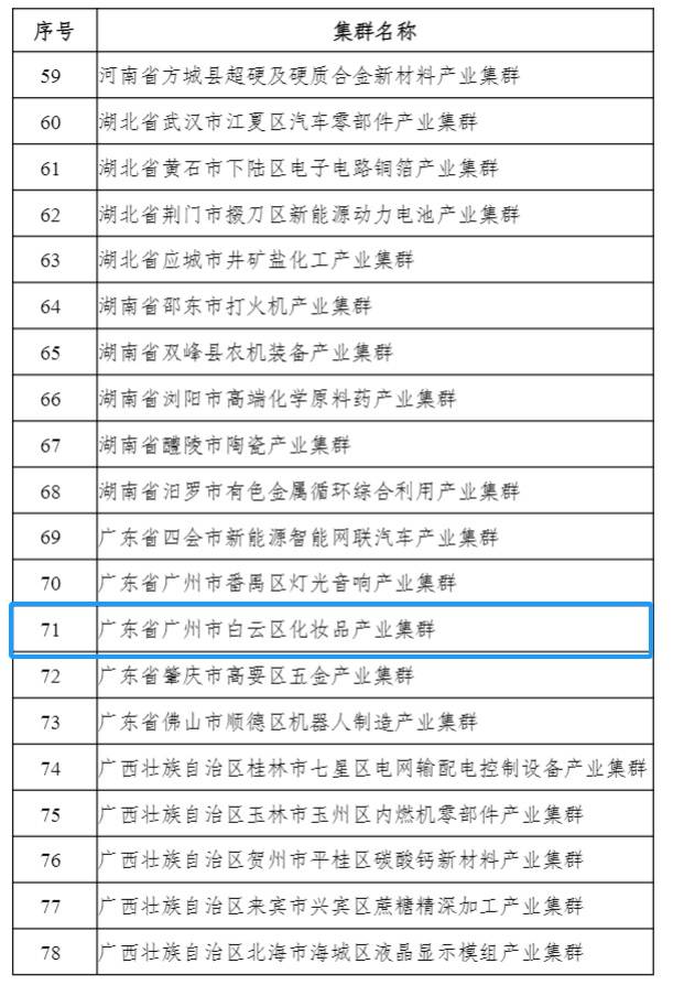 近日,工业和信息化部公布了一批国家级中小企业特色产业集群名单。白云区化妆品中小企业产业集群榜上有名。