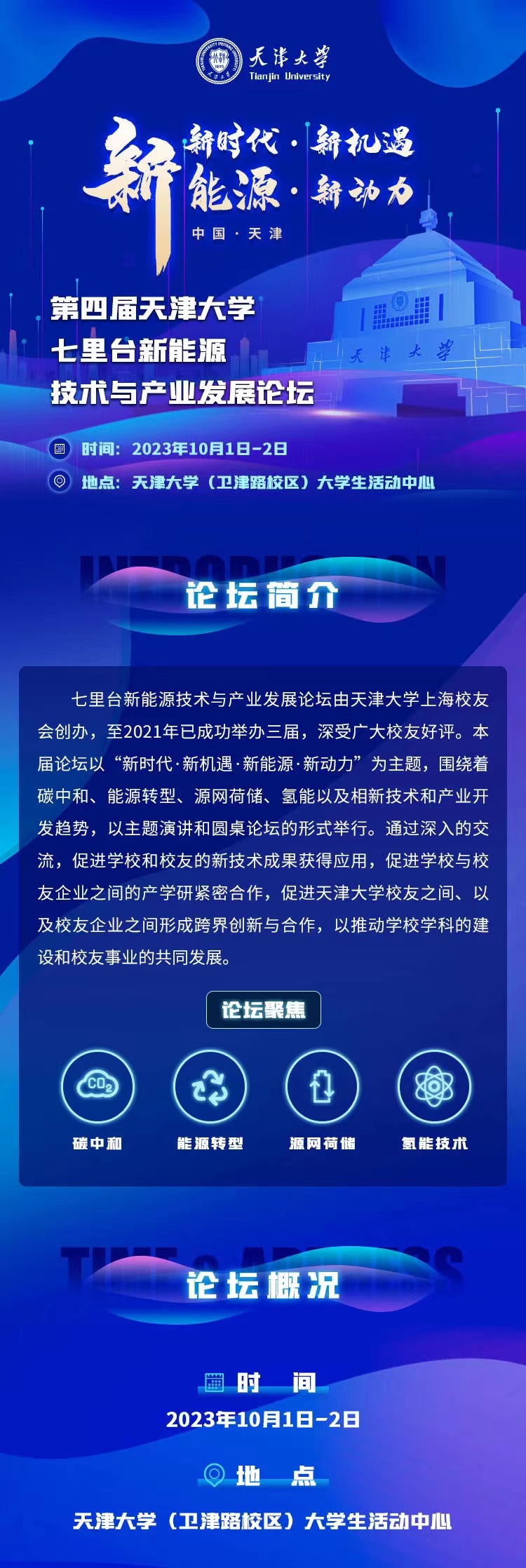 10月1日,第四届天津大学七里台新能源技术与产业发展论坛在津召开,论坛邀请国内外储能领域权威院士、知名专家、行业翘楚、企业家围绕如何抓住储能机遇,让新能源配储产生价值,实现“双碳”目标进行头脑风暴。论坛上,规模5亿元的天大北洋海棠新能源新材料创投基金正式发布。国庆节,天津大学这所中国第一所现代大学、老牌工科强校以这样一种方式为祖国庆生。
