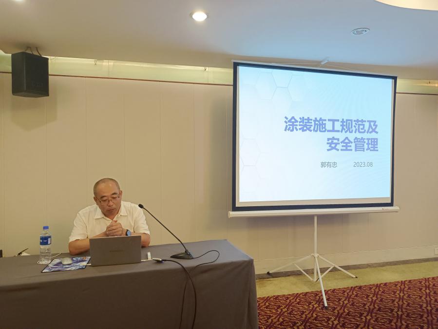 培训中,宁波高专建设监理有限公司郭有忠总监理工程师作《涂装施工规范及安全管理》专题授课,他从“建筑涂饰工程施工及验收规程”等五项涂装规范及相关标准进行深入地解读,并结合日常施工过程中的典型常见的案例,对企业易出现的隐患和漏洞提出了建议,系统而生动地讲解了企业如何落实规范施工和安全管理。