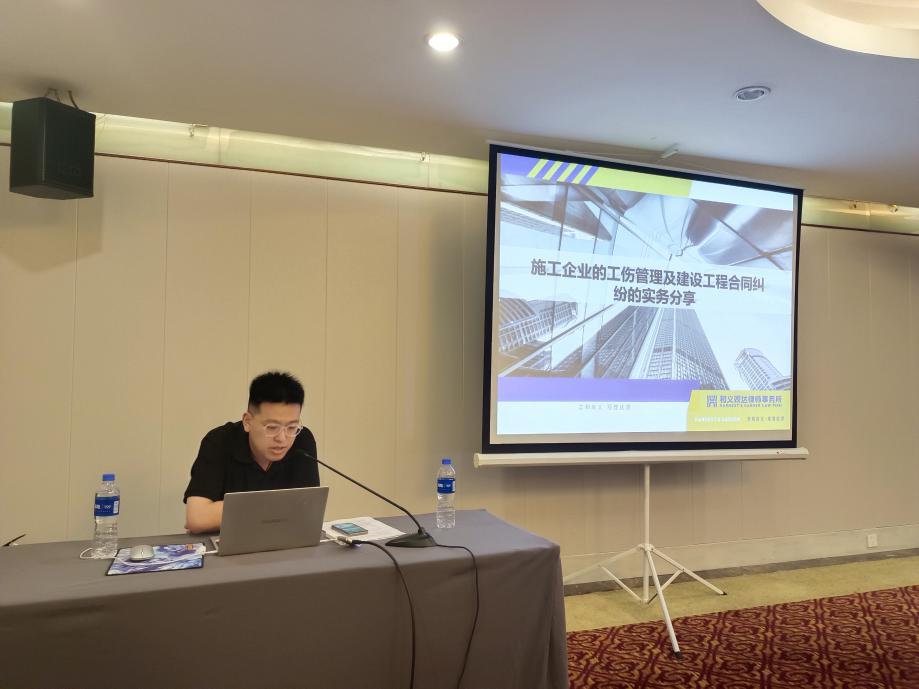 浙江和义观达律师事务所袁亮律师作《施工企业的工伤管理及建设工程合同纠纷的实务分享》,他围绕工伤的认定、认定程序和鉴定、工伤保险成本及工伤保险待遇、工伤管理实务问题处理、专业分包合同的风险管控五方面进行解读,并用案例的形式紧扣行业特点,为企业将矛盾纠纷扼杀在摇篮中,规范合同制定提供了法律依据。