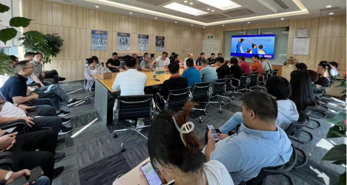 在会议室召开了交流座谈会,徐继伟总监对宁波涂协一行的莅临表示热烈欢迎,中远佐敦船舶涂料公司是佐敦集团在中国的三家子公司之一,传承了佐敦集团的“企鹅精神”,始终致力于做好船舶涂料,希望以本次活动为契机,与在座的企业家一同交流互学,共同进步。