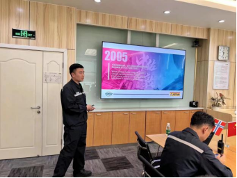 会上,生产经理杨帆为大家播放了企业宣传片,并就企业管理、制度文化建设、物流管理、公益慈善、社会责任等进行了详细介绍;安全经理刘国栋为大家深入解读了企业的安全管理,如通过设立企业安全日等措施夯实管理体系建设。