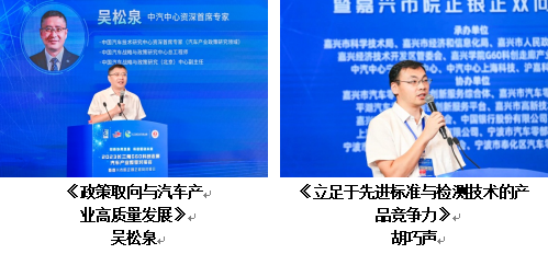 韩国两院院士、嘉兴学院纳米技术研究院院长洪淳亨,乌克兰外籍院士、新加坡优泰科技有公司董事长夏庆华,中汽中心资深首席专家、中汽政研总工程吴松泉,合众新能源创始人、副总裁林伟义,中汽中心宁波检验中心技术总监胡巧声为与会人员带来汽车产业相关主题报告。