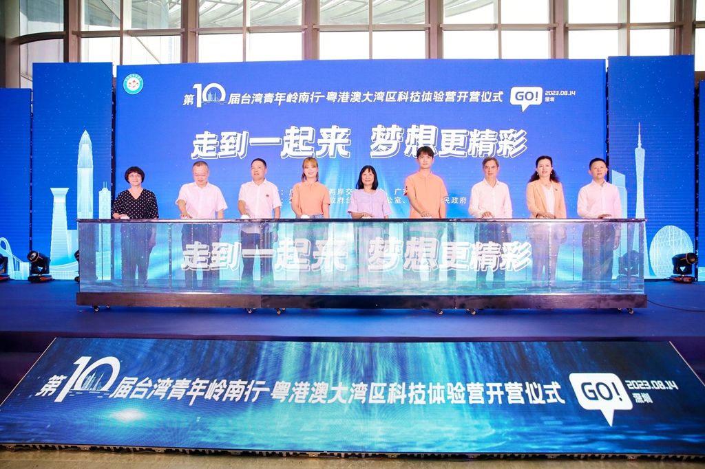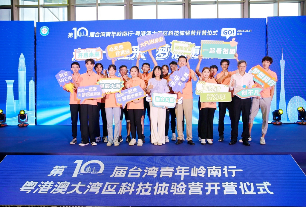 以“走到一起来,梦想更精彩”为主题的第十届台湾青年岭南行——粤港澳大湾区科技体验营在深圳市福田区中洲湾正式开营。来自台湾大学、台湾清华大学、深圳大学等院校的高校师生以及嘉宾共60余人参加开营仪式。活动以体验粤港澳大湾区科技发展活力为主线,寄望在粤台两地架起一座科技发展与合作的桥梁。