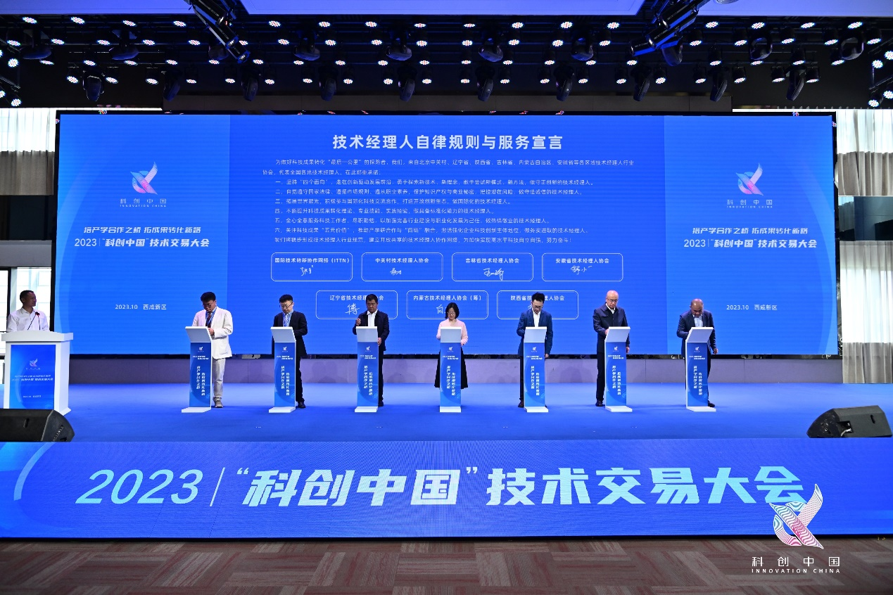 10月9日,2023“科创中国”技术交易大会在陕西省西咸新区举行。论坛中,来自北京中关村、辽宁省、陕西省、吉林省、内蒙古自治区、安徽省等相关区域的7名技术经理人协会代表共同签署《技术经理人自律规则与服务宣言》,并郑重承诺:将稳步形成技术经理人行业规范,建立开放共享的技术经理人协作网络,为加快实现高水平科技自立自强,努力奋斗!