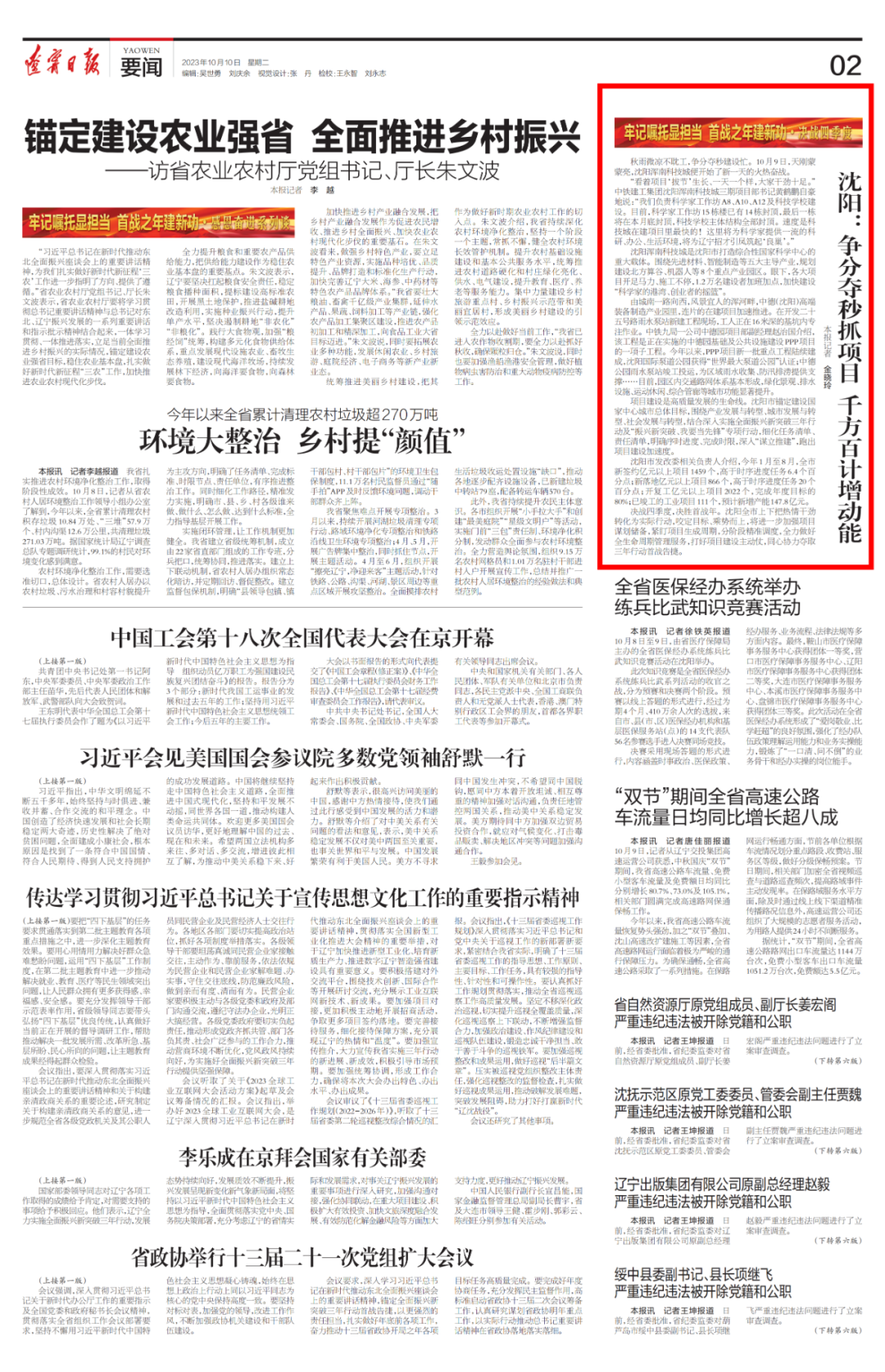 辽宁日报|沈阳:争分夺秒抓项目 千方百计增动能