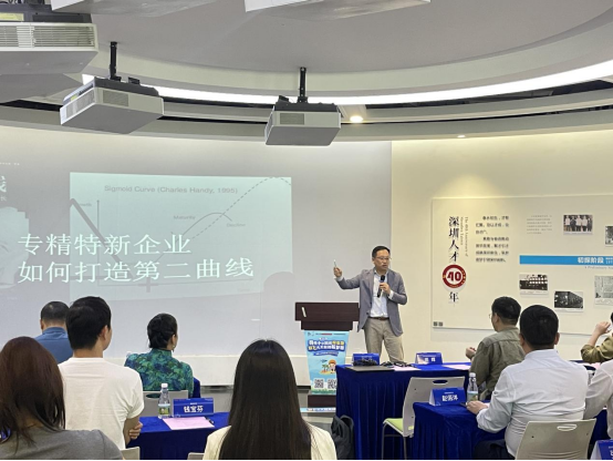 活动紧紧围绕专精特新发展,进行系列主题分享。香港大学中国商业学院高级课程主任吴岸围绕“专精特新企业如何打造第二增长曲线”进行精彩分享。吴老师解析了第二曲线“开辟创新,建设新道路”的概念,并延伸对焦到专精特新企业的发展,分析专精特新的概念和意义。讲解中,他提出“专精特新是否在重新构建”问题,引导嘉宾重新思考、创新解读,同时进行案例验证曲线增长的重要性,鼓励企业要在源源不断的发展曲线中找到增长点,为企业获得永续发展的能力。