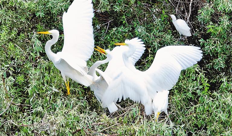 白鹭雏鸟振翅待翔。