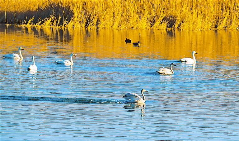 如今,漫步在河湖沟渠两岸,处处碧水蜿蜒、芳草萋萋。随着秋意渐浓,各种鸟儿选择来黄河平罗段两侧的大小湿地栖居,它们时而安静休憩、时而展翅腾空、时而结伴觅食,成为秋日黄河岸边一道亮丽的风景。