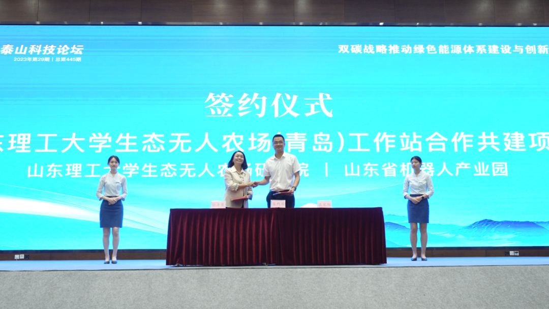 日前,由山东省机器人研究会与瑞源控股集团共同承办的 “2023泰山科技论坛—双碳战略推动绿色能源体系建设与创新发展高峰论坛”在青岛成功举行。会上,山东省机器人产业园与山东理工大学生态无人农场研究院举行签约仪式,山东理工大学生态无人农场(青岛)工作站项目成功落地园区。