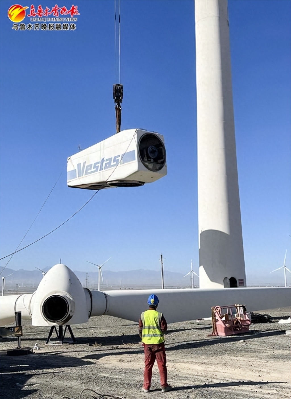 当天,记者在项目现场看到,吊装完成后,施工人员正在进行并网前最后的调试工作。