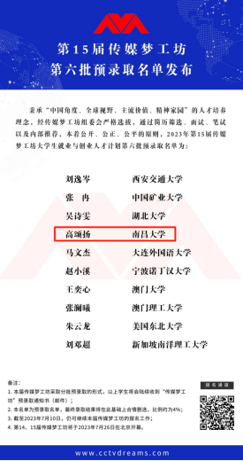 6月6日晚,梦工坊青年发布第15届第6批预录取名单,江西信息通信科技服务站学生骨干成员、通信学会江西科技志愿者分队成员、南昌大学信息工程学院人工智能实验班学生高颂扬在几万名报名学生中脱颖而出,获得与一百多名来自全球高校优秀学生交流学习的机会。同时,因表现优秀,她还被选为小组的组长,被期待去带领一个小组完成为期11天的学习和两大赛的组织和参与。