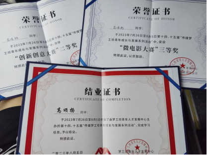 图5 高颂扬在活动中获得的结业证书与荣誉证书