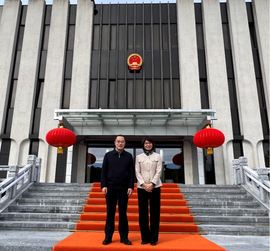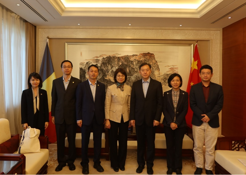 9月26日下午,代表团拜会了我国驻比利时大使馆,使馆吴刚公参、黎慧参赞及相关处室同志与代表团会见会谈。雷鸣首先介绍了学校情况及此次访问比利时合作院校情况。她表示,学校与比利时鲁汶大学依托本科生联合培养项目的开展,已建立了扎实的合作基础,未来将致力于丰富项目层次及合作形式,并探索拓展更多比利时优质合作伙伴。吴刚公参介绍了使馆及教育处基本情况,他表示未来希望学校发挥学科特色,依托友城合作等平台渠道,推动与比利时高校的深度合作。