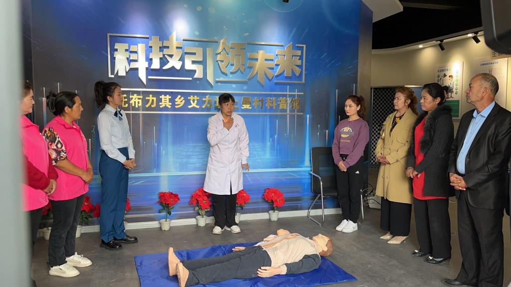 10月8日,由巴州科协主办,各县市科协承办,全州一百多家乡村科普馆联动参与的巴州“文化润疆 乡约科普”乡村科普馆直播季第三场活动暨巴州乡村科普馆直播季农牧民急救技能展示活动以线下+线上直播的方式举行,本次活动是以库尔勒市托布力其乡艾力坎土曼村乡村科普馆为主场,各县市乡村科普馆为分会场同期开展。参与直播的县市乡村科普馆通过“知识讲解+现场演示+实践操作”的模式,向观众们介绍普及急救知识。