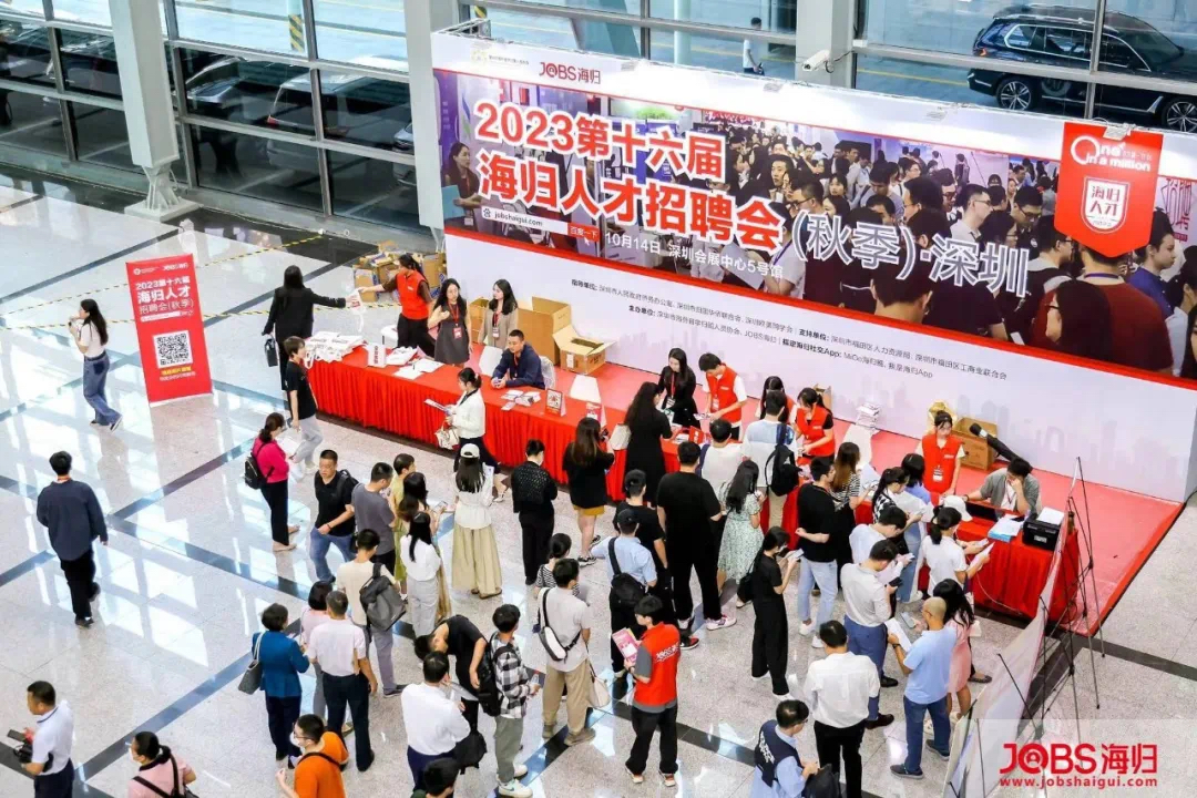 10月14日,第十六届深圳海归人才招聘会在深圳福田会展中心五号馆举行。本次活动由深圳市海外留学归国人员协会、JOBS海归网主办,招聘会占地面积7500平方米,超100家企业参加,现场提供5000多个专门针对海归人才的优质岗位,吸引了上万人次的海归求职者。