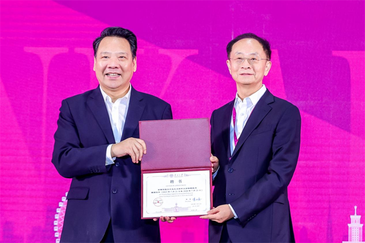 南开大学校长陈雨露向张文中致送南开大学特聘教授聘书。