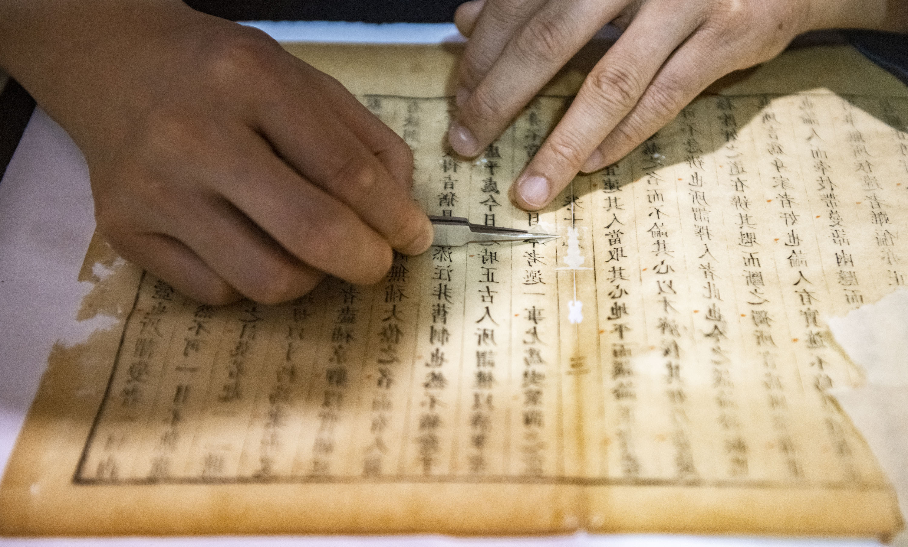 专业人员进行古籍修复。广州日报·新花城记者 廖雪明 摄