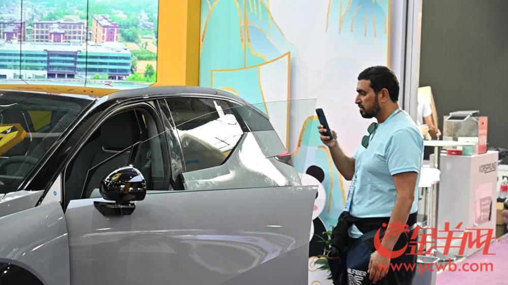 第134届广交会上,“新能源汽车及智慧出行”展区里外国友人正在拍摄