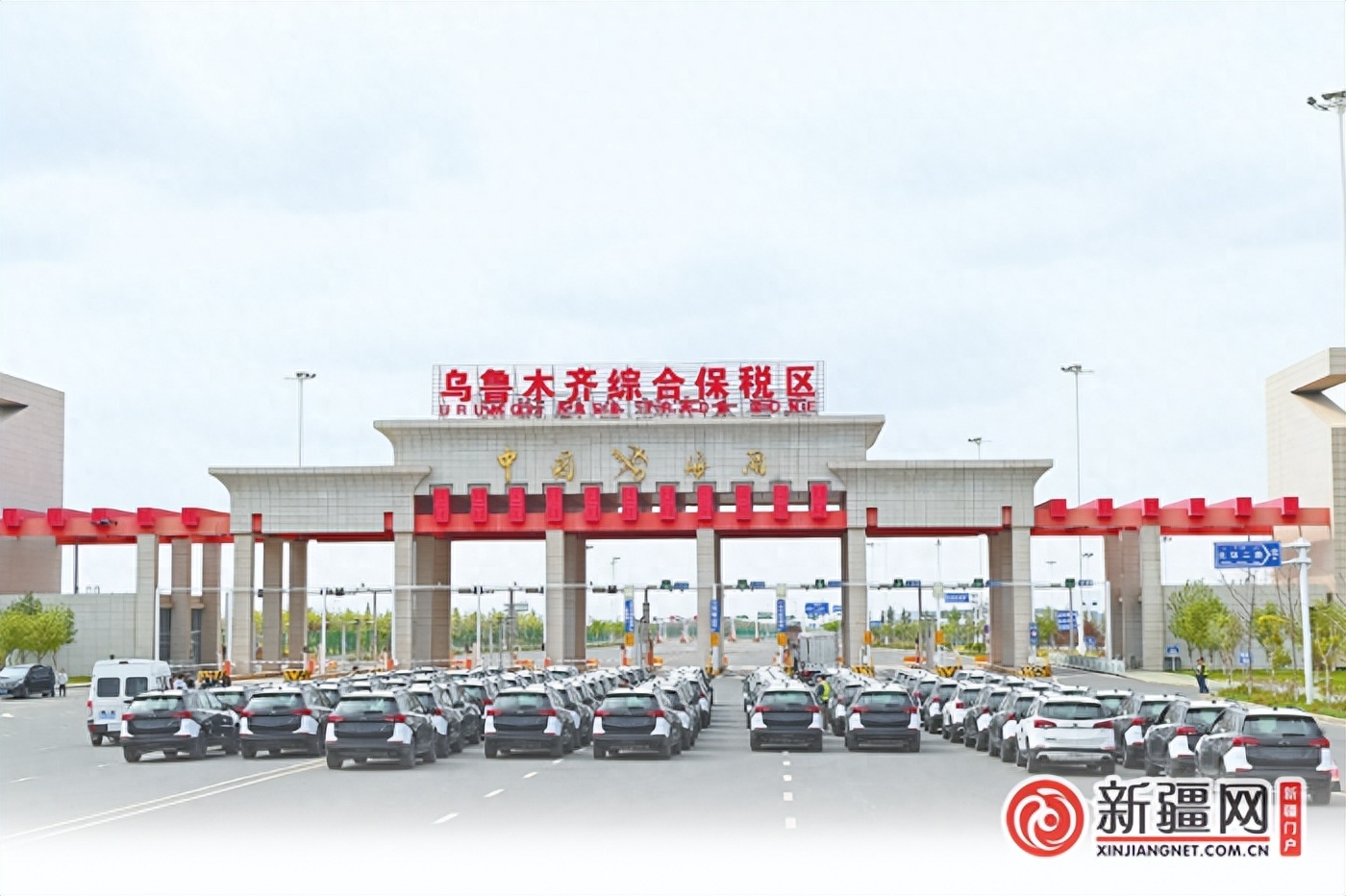 在乌鲁木齐综合保税区通关口,车辆依次排列准备通过审核验放。